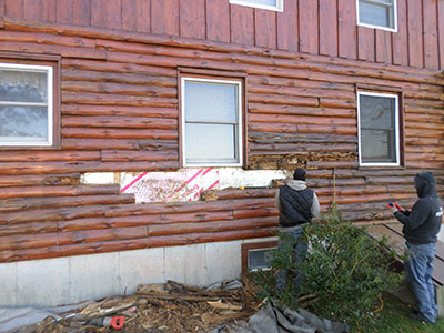 Often older log homes succumb to the weather and have rotted logs. There is a right way to address this. This would mean cutting away the rotted portion of the log and replacing it.